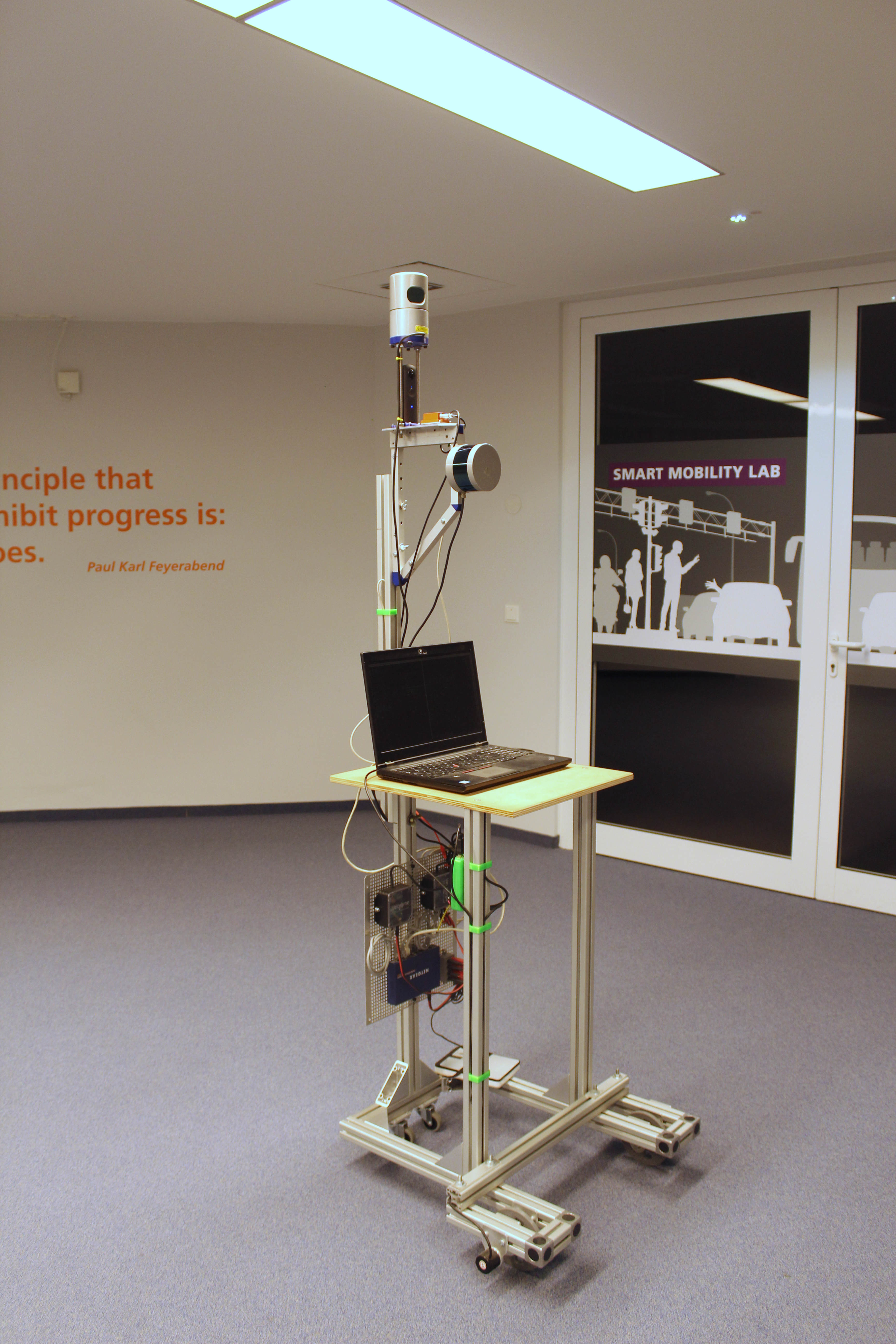 As depicted in the Figure, the trolley is meant to be a 2D mapping platform compared to the backpack. It holds the following sensors and hardware: